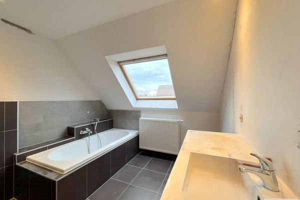 Deze woning met drie slaapkamers en inpandige garage resideert op een boogscheut van het centrum van Handzame. Bij het betreden van de woning treft u de inkomhal met ingebouwde dressingkast. Daarnaast beschikt de woning over een ruime lichtrijke leefruimte met open keuken en een inpandige garage. Op de eerste verdieping bevinden zich drie slaapkamers en een badkamer met zowel ligbad als douche. Via een valtrap komt u terecht op de zolder. De woning beschikt verder over zonnepanelen en twee autostaanplaatsen. Vrij 1/2/2026. EPC 108 kWh/m2 jaar.